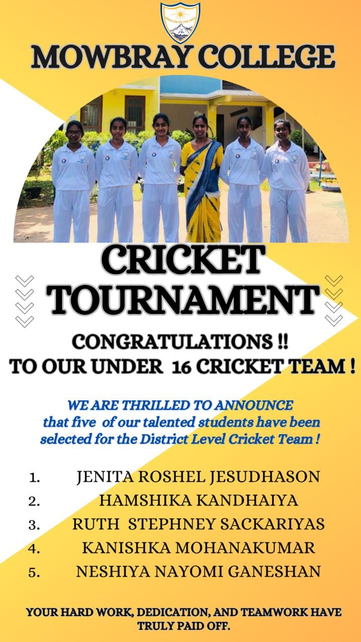 We are proud to celebrate the incredible achievement of Mowbray College’s Under-16 Cricket Team! Congratulations to our five talented students—Jenita Roshel Jesudhasan, Hamshika Kandhaiya, Ruth Stephney Sackariyas, Kanishka Mohanakumar, and Neshiya Nayomi Ganeshan—on their selection for the District Level Cricket Team! Your hard work, dedication, and teamwork have truly paid off. We wish you all… Continue reading Cricket Tournament